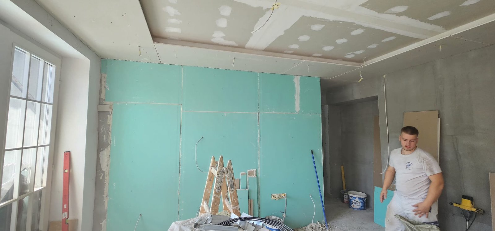 Radimo adaptacije stanova, kuća i kupaonica, rušenja, suhomontažu, postavu knaufa i spuštenih stropova te keramičarske radove i oblaganje kamenom.
